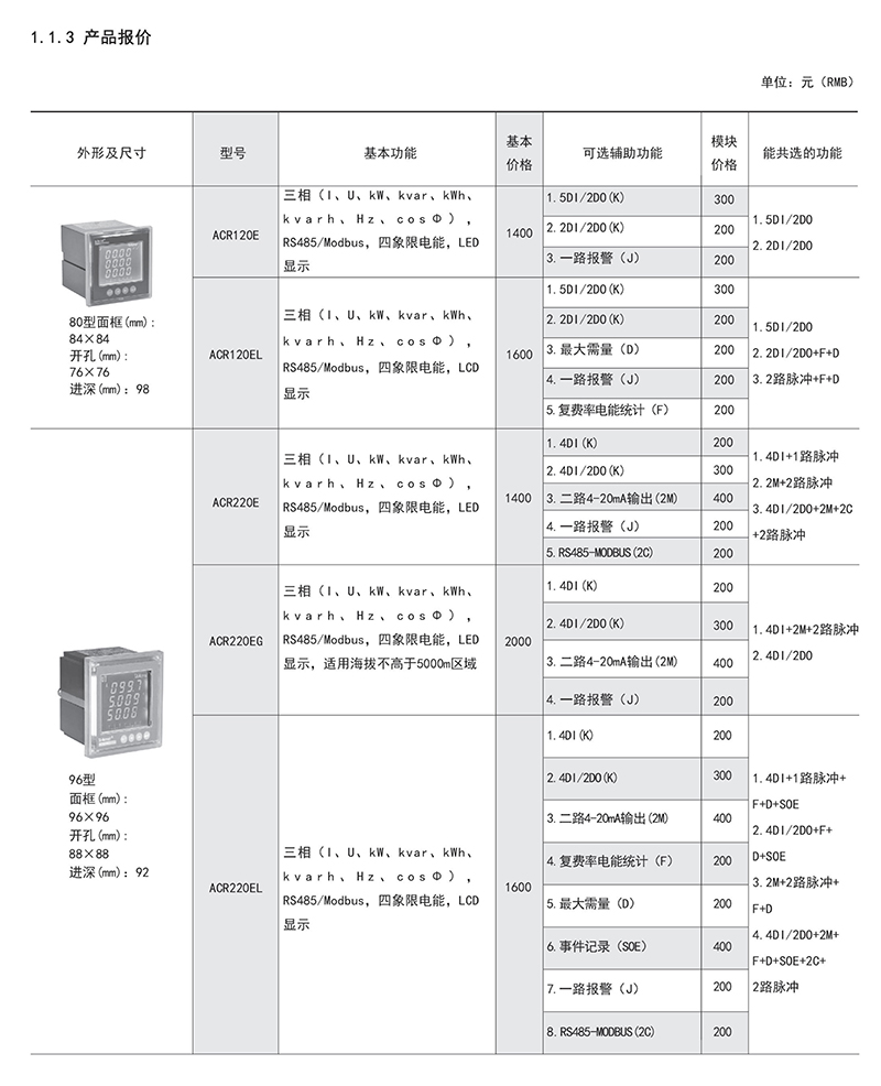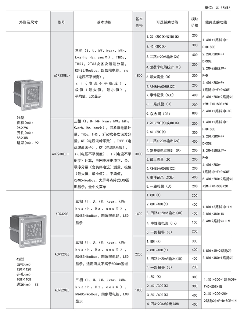 ACR系列嵌入式電力儀表