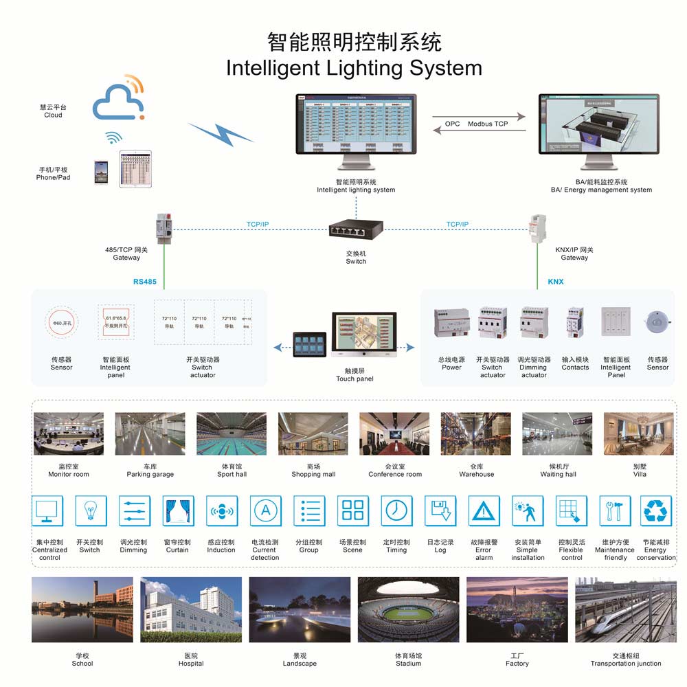 辦公樓、商場、圖書館、會(huì)展中心等需要對(duì)照明進(jìn)行智能控制的場合。
